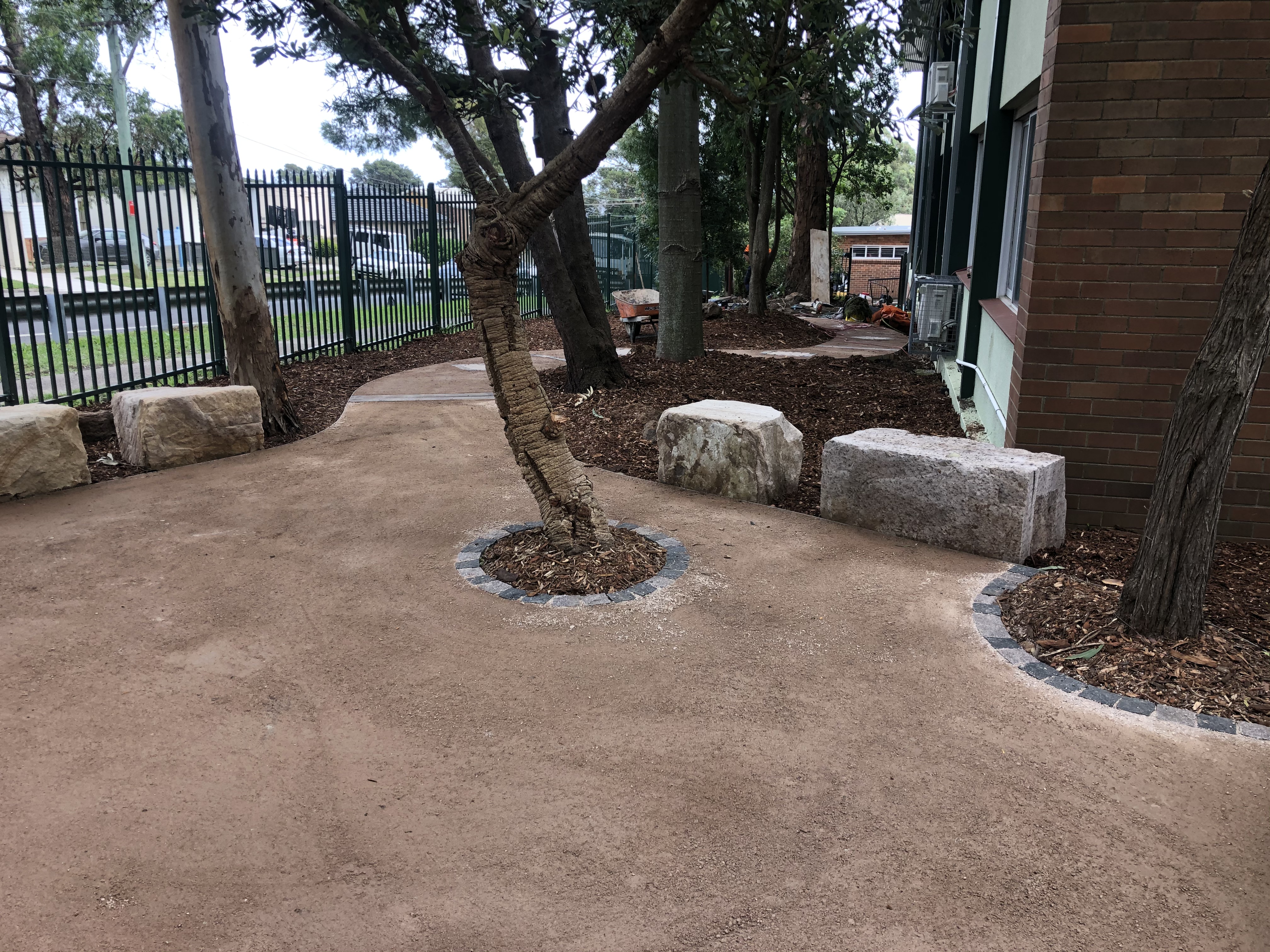 Engadine Public School had unusable areas that required transformation to easily maintainable usable areas that brings imagination to all that use the areas and walkways.