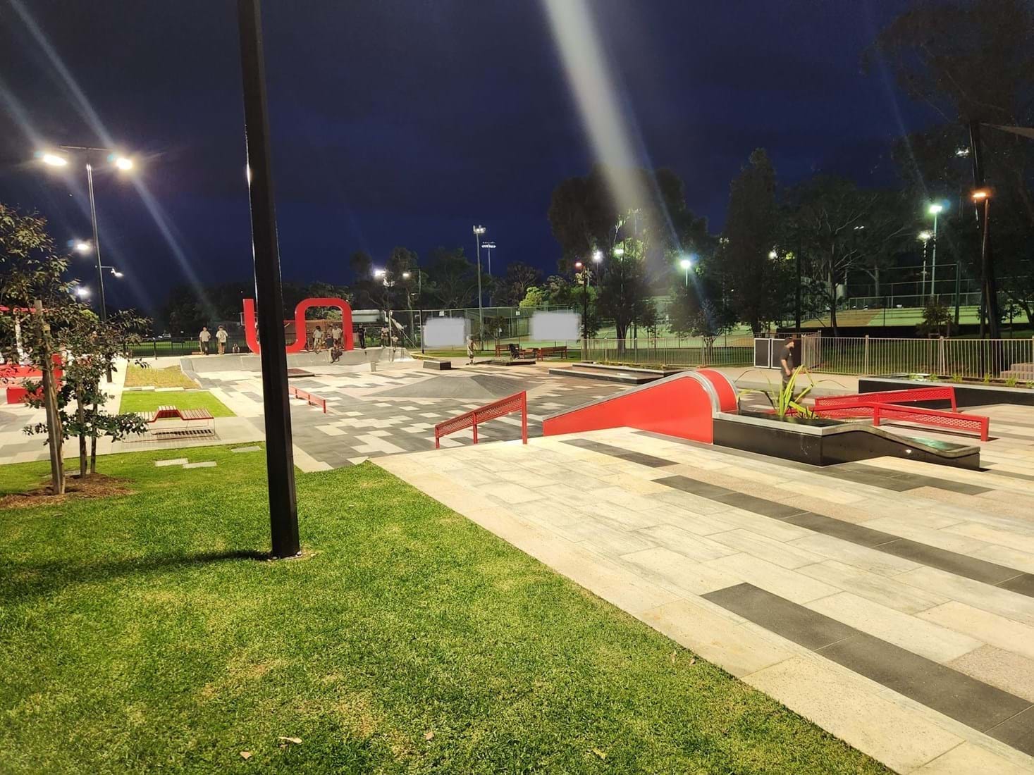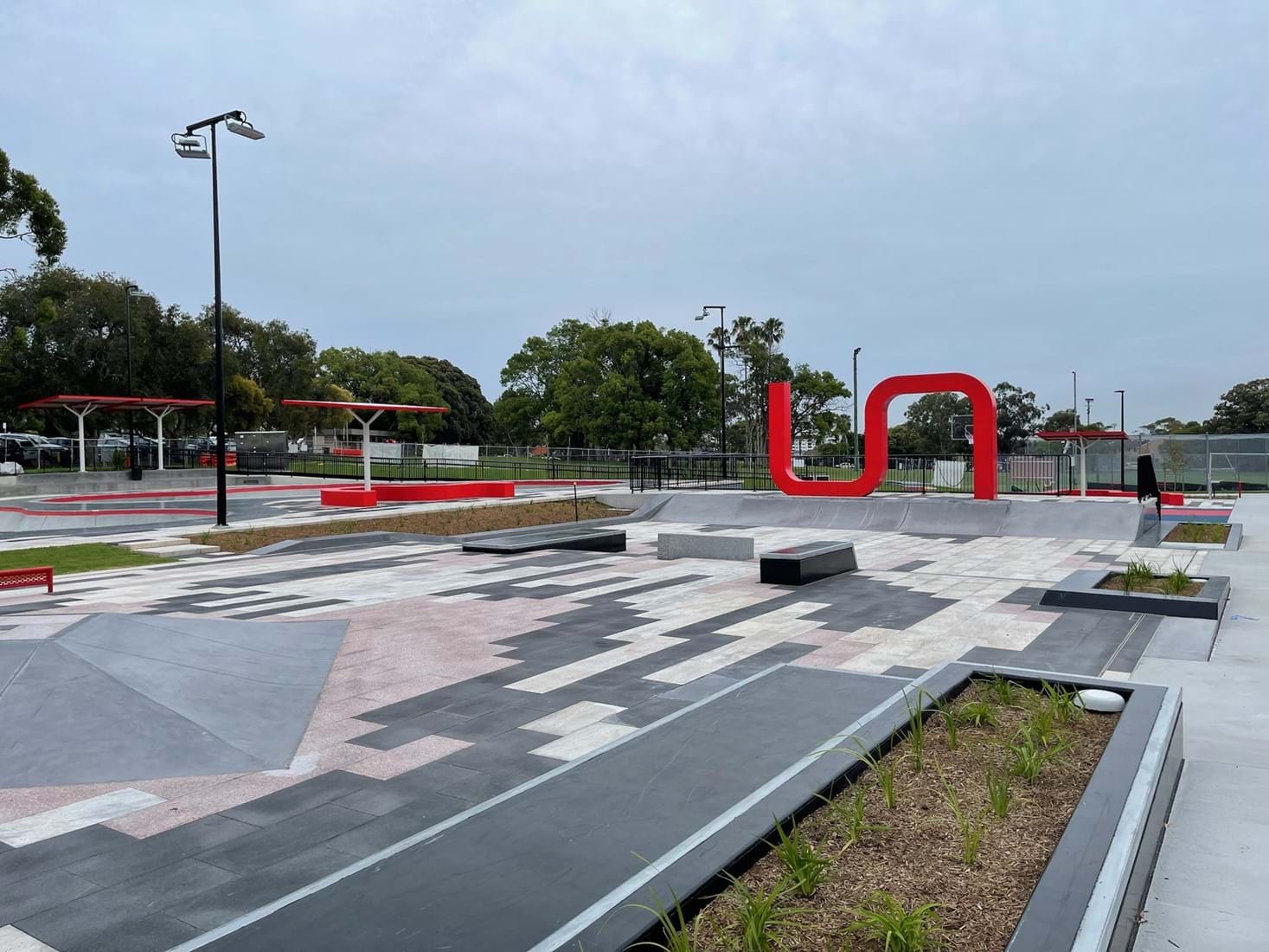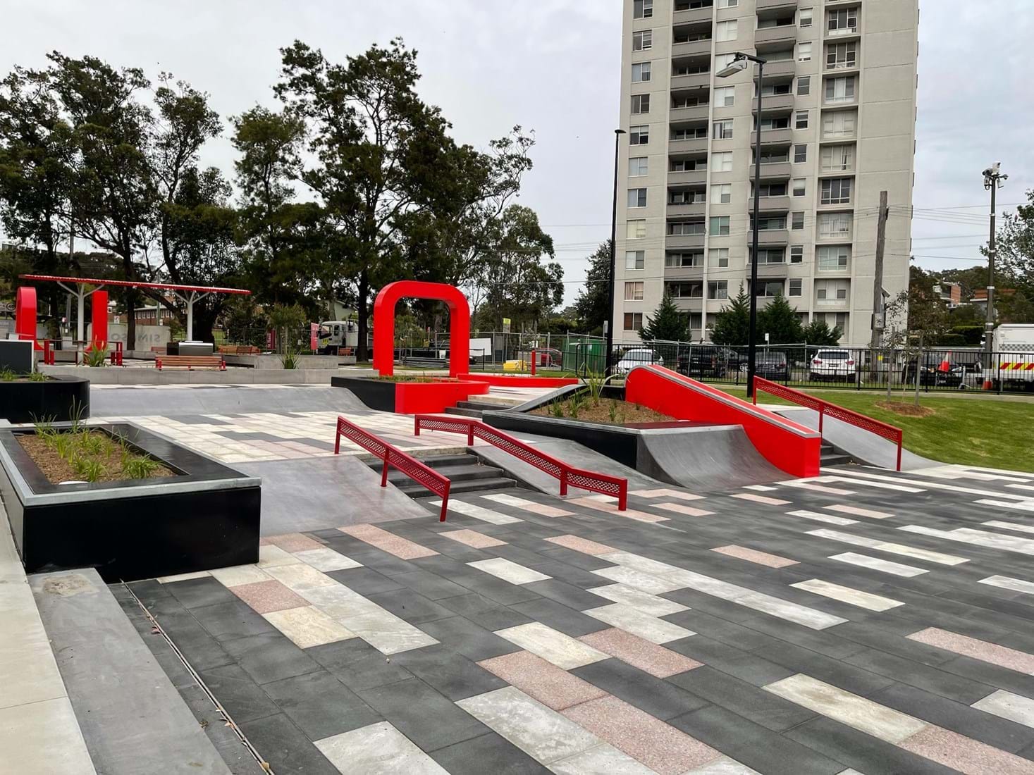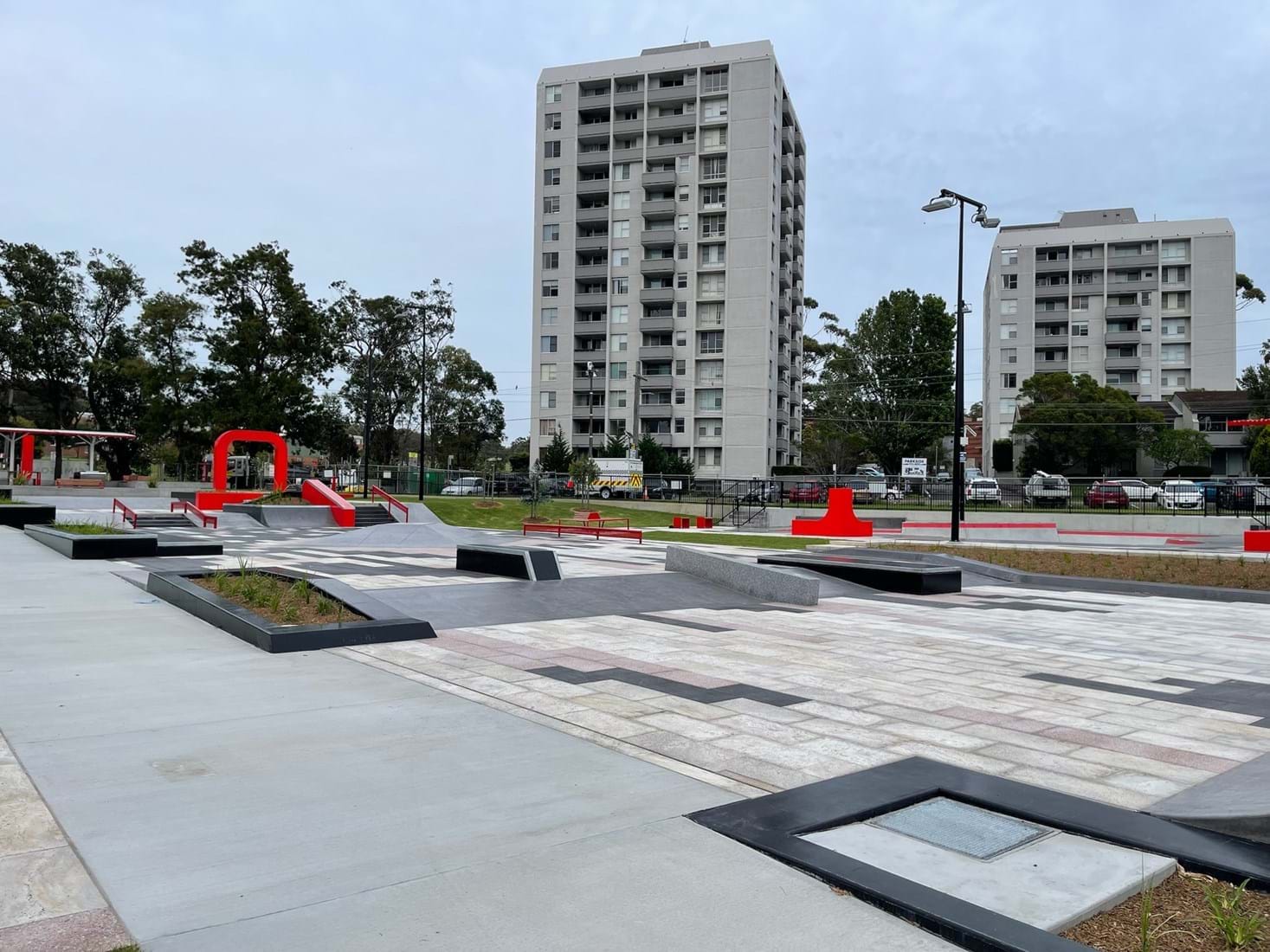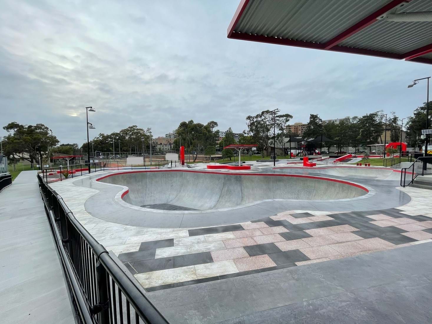 The precinct contains a skate park featuring two