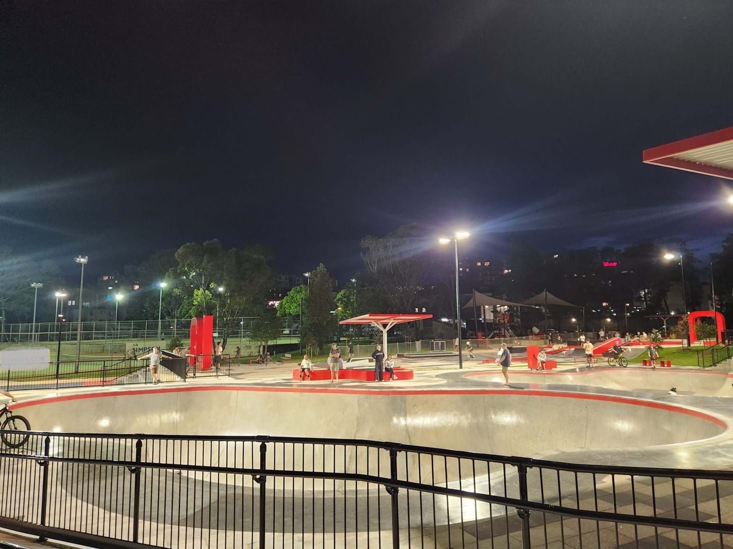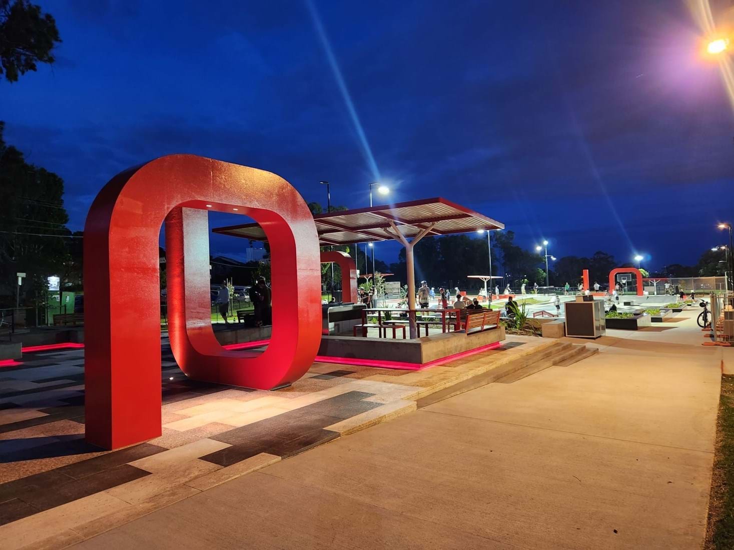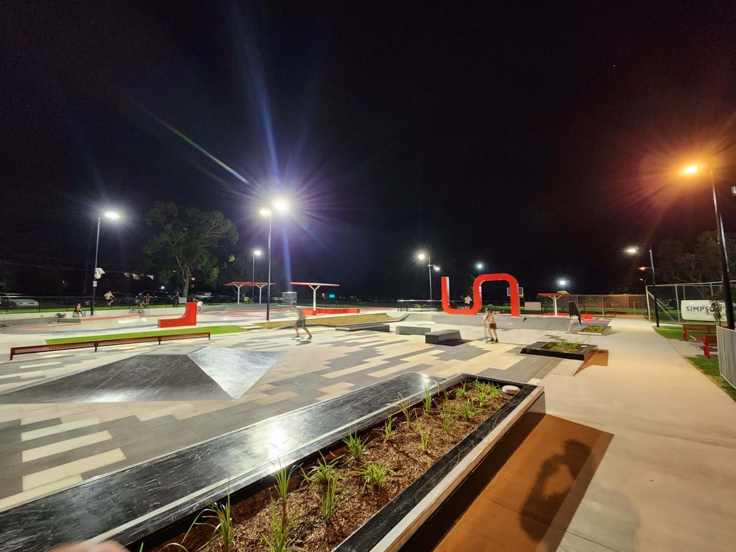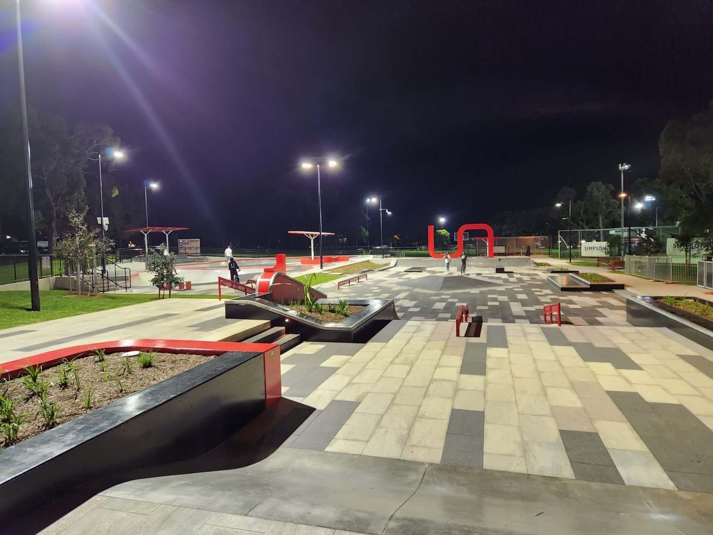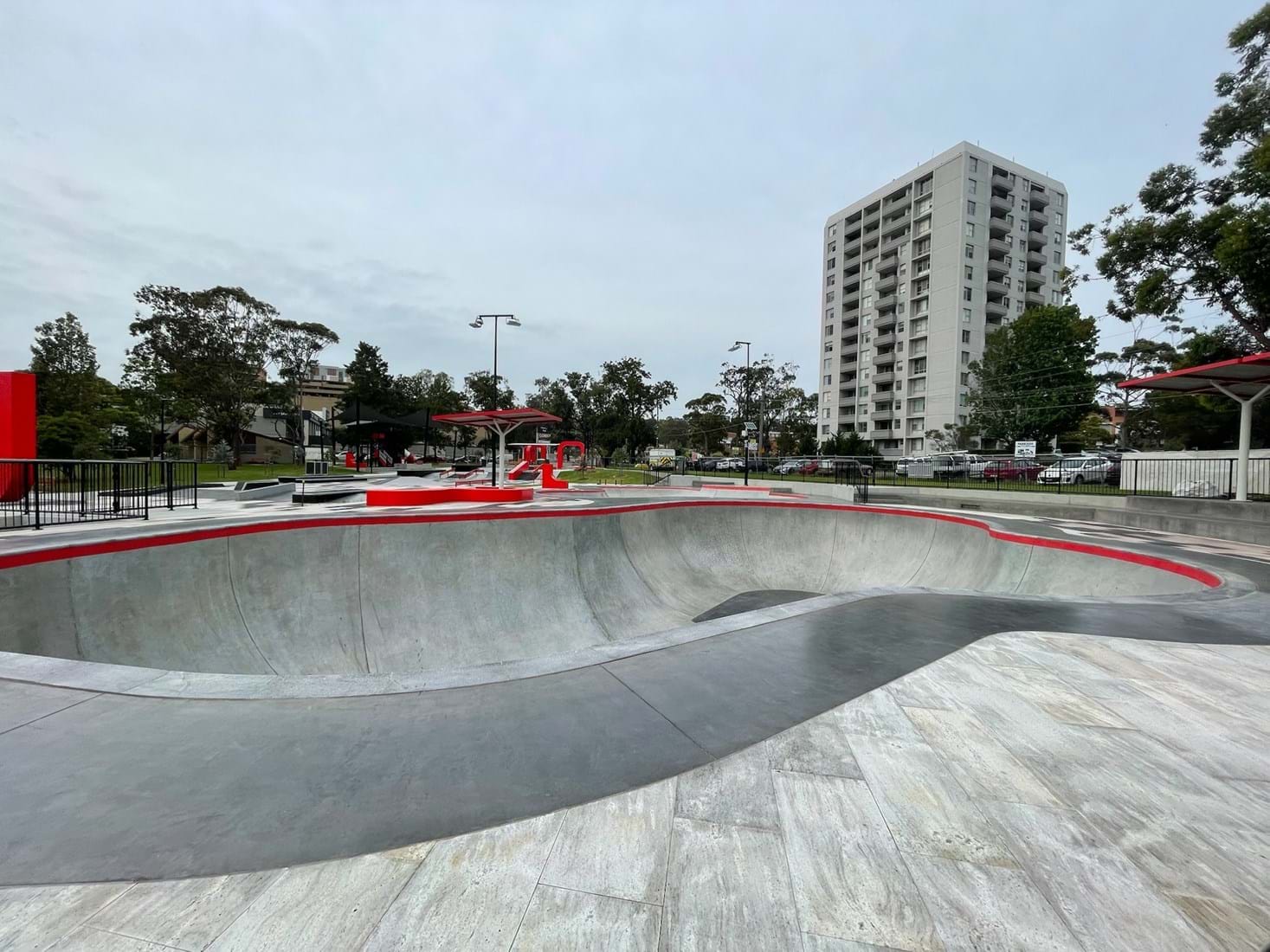 The precinct contains a skate park featuring two