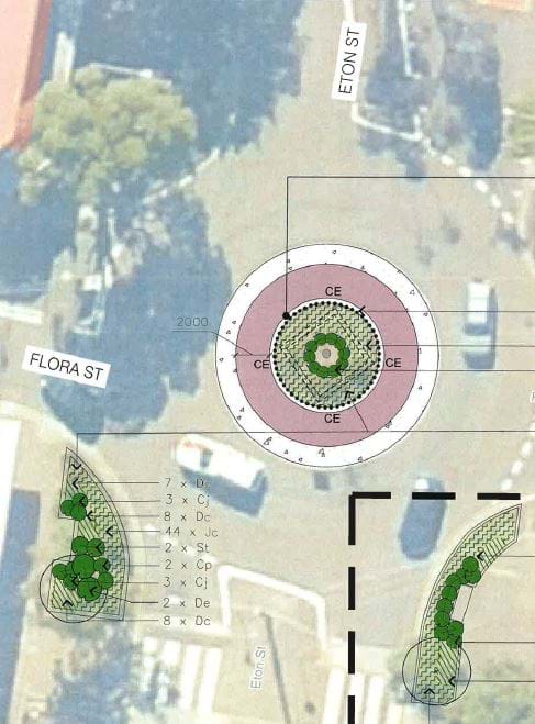 Upgrading of landscape works to roundabout in the Sutherland Shire, including concrete works and mass plantings.