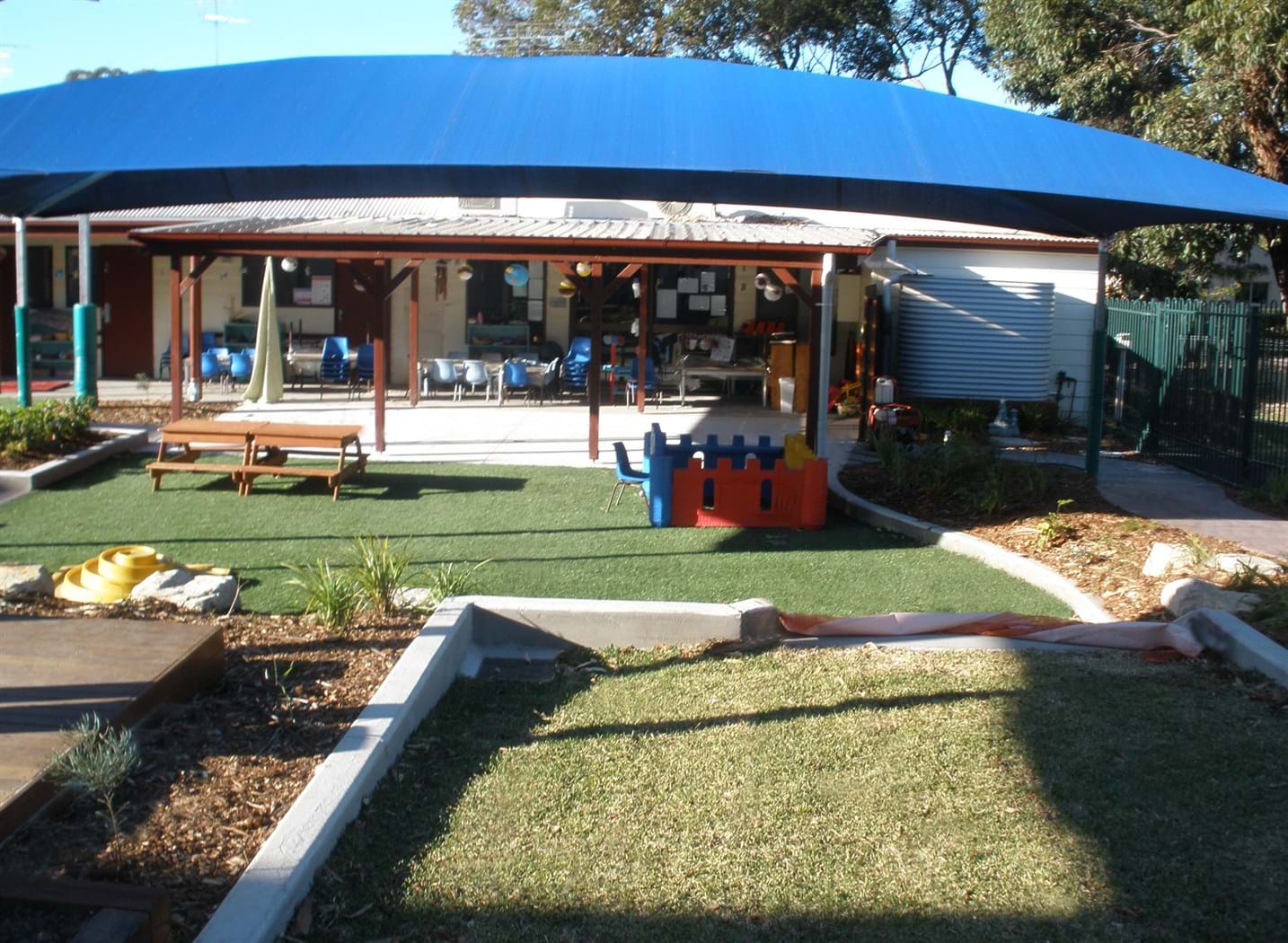 Sutherland Shire Council, required the construction of the outdoor play space at Canberra Road Childcare Centre in Sylvania. The site of approximately 403m2, provides the opportunity for active and passive recreation for children aged between 0-5 years. Site works included: demolition of existing site; earthworks and regrading, including mounding; extensive drainage works including subsoil drains, pits and connection to stormwater; hard works including construction of concrete paths, decking, walls, concrete edging, and footings; softworks including planting, turf, mulch, stone boulders.