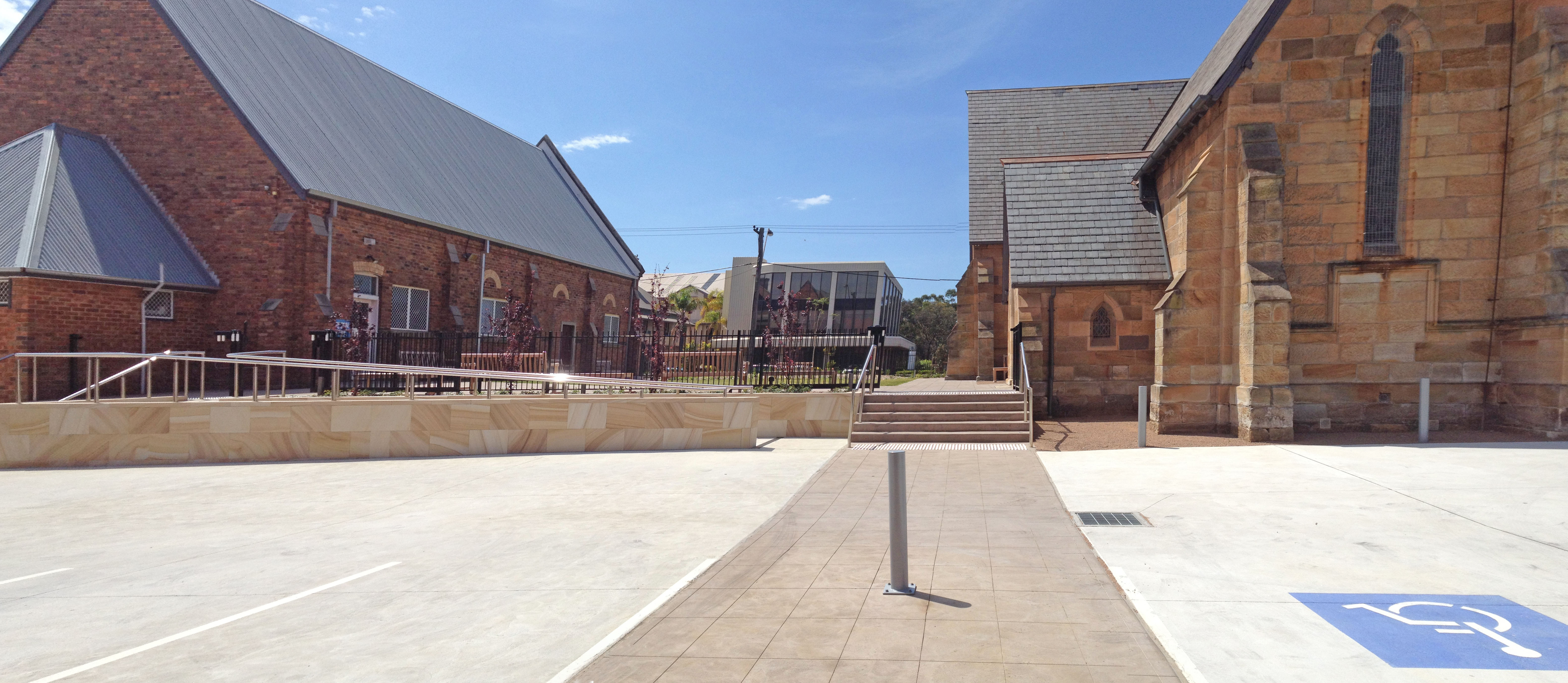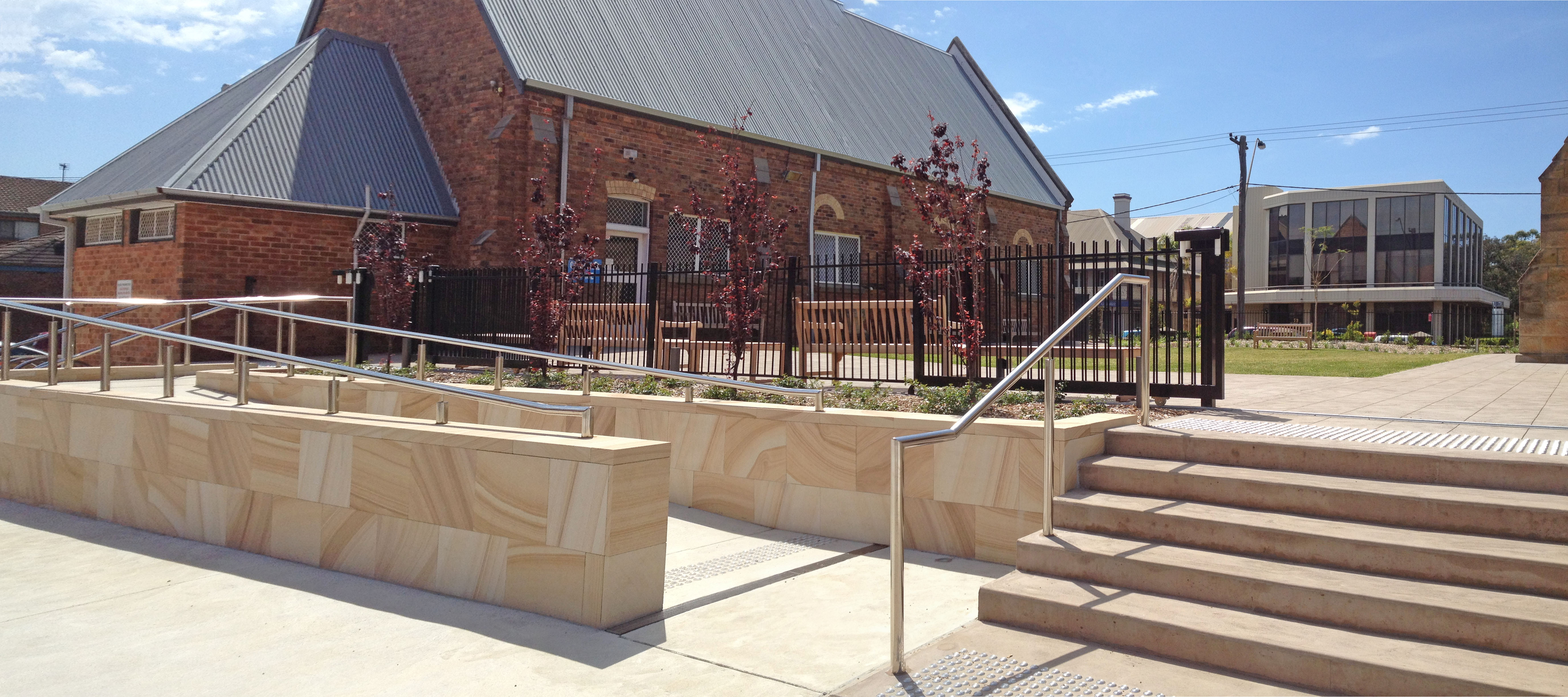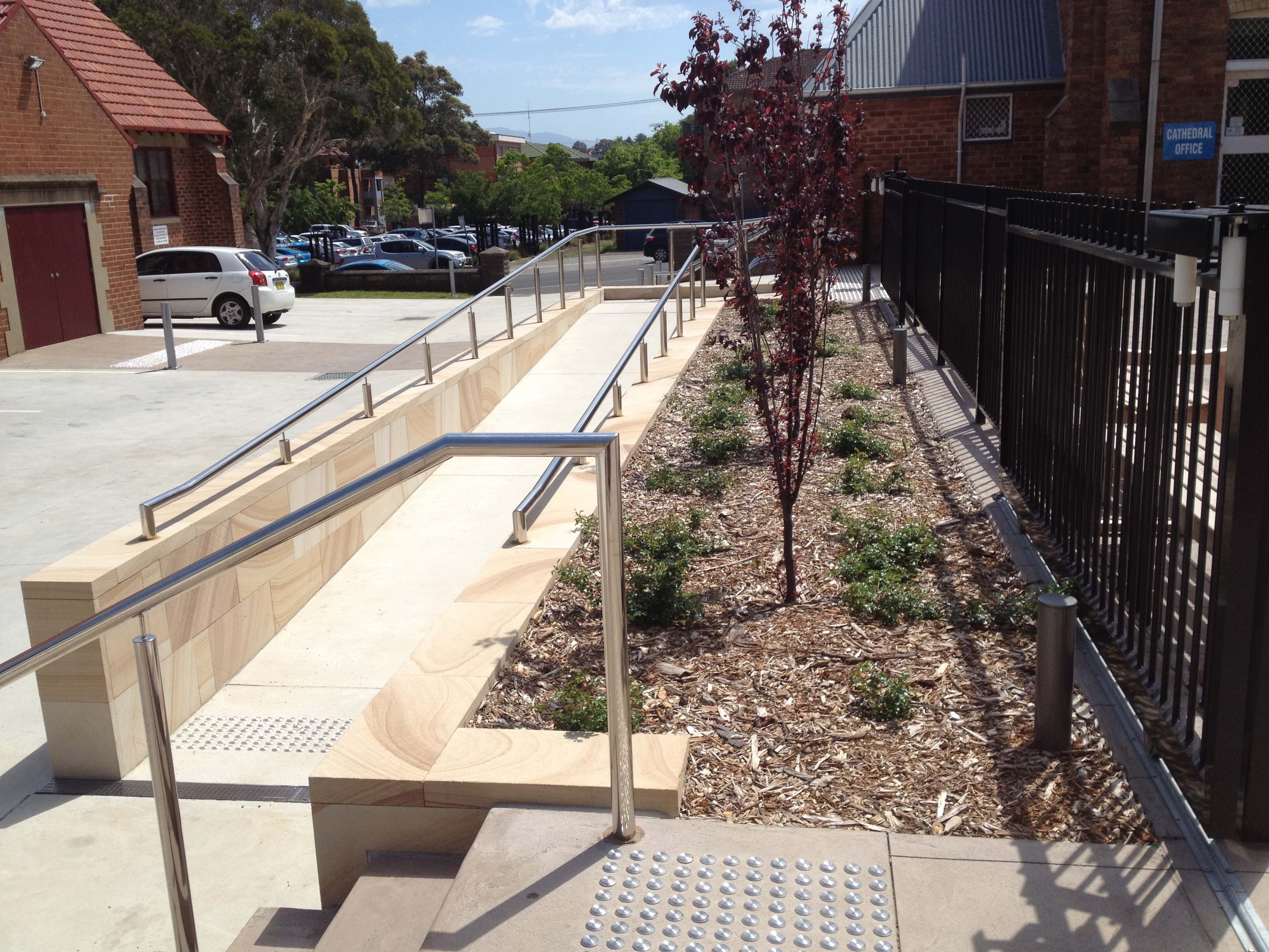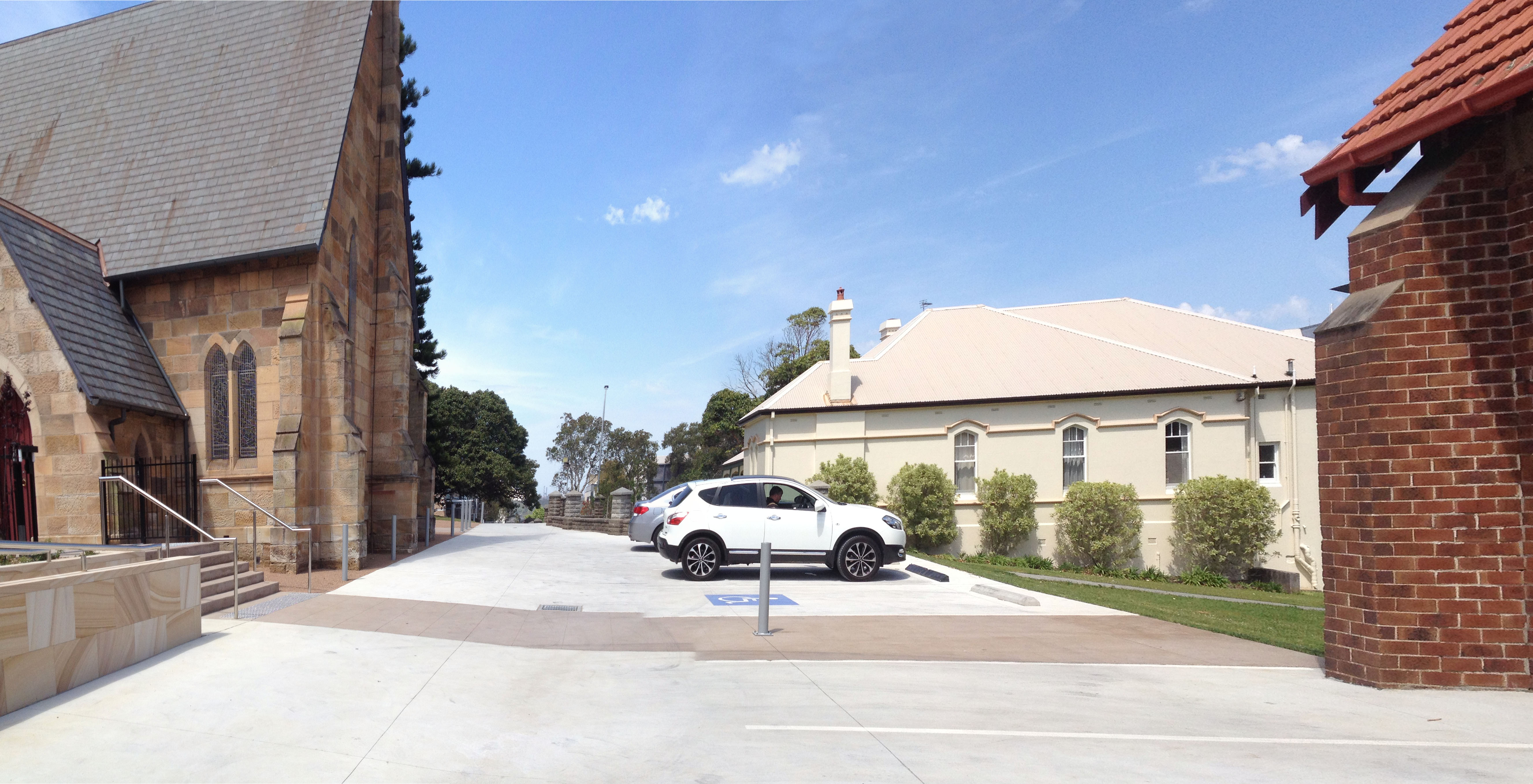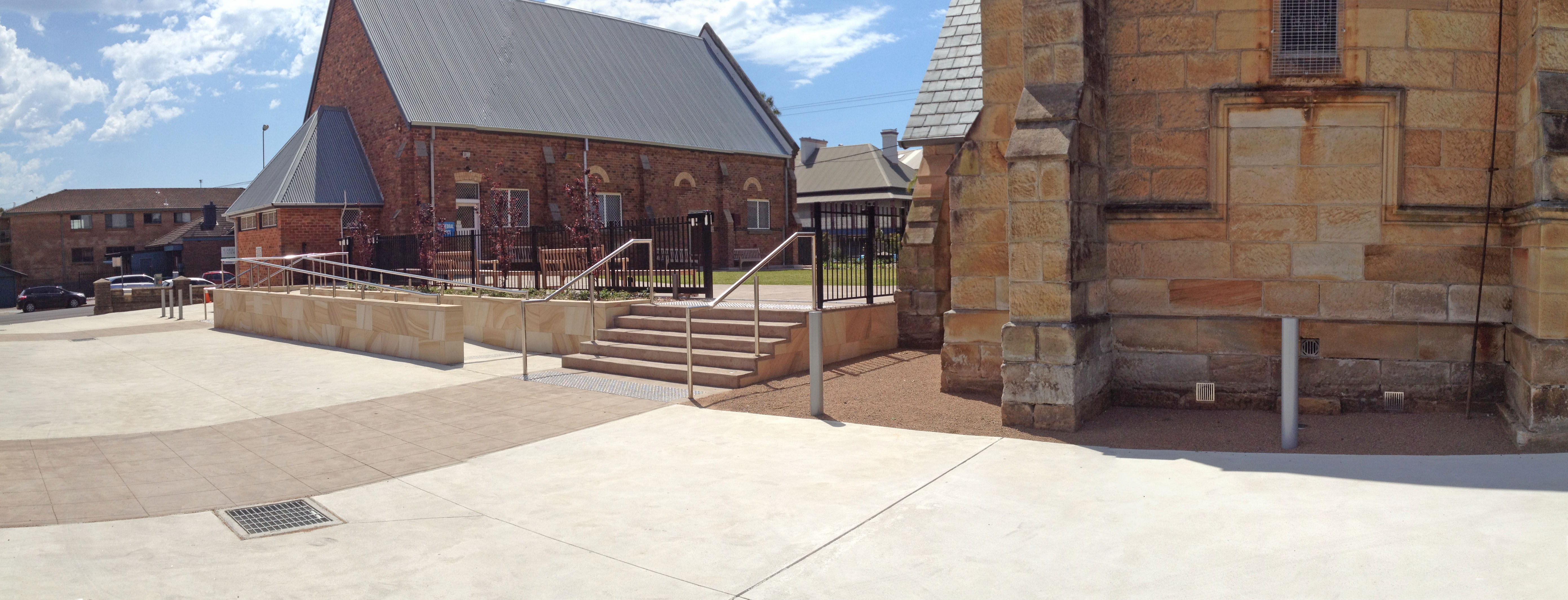 Upgrading of landscape works to st Michaels Church Wollongong, including concrete works, ramps, courtyard, play area and mass plantings.