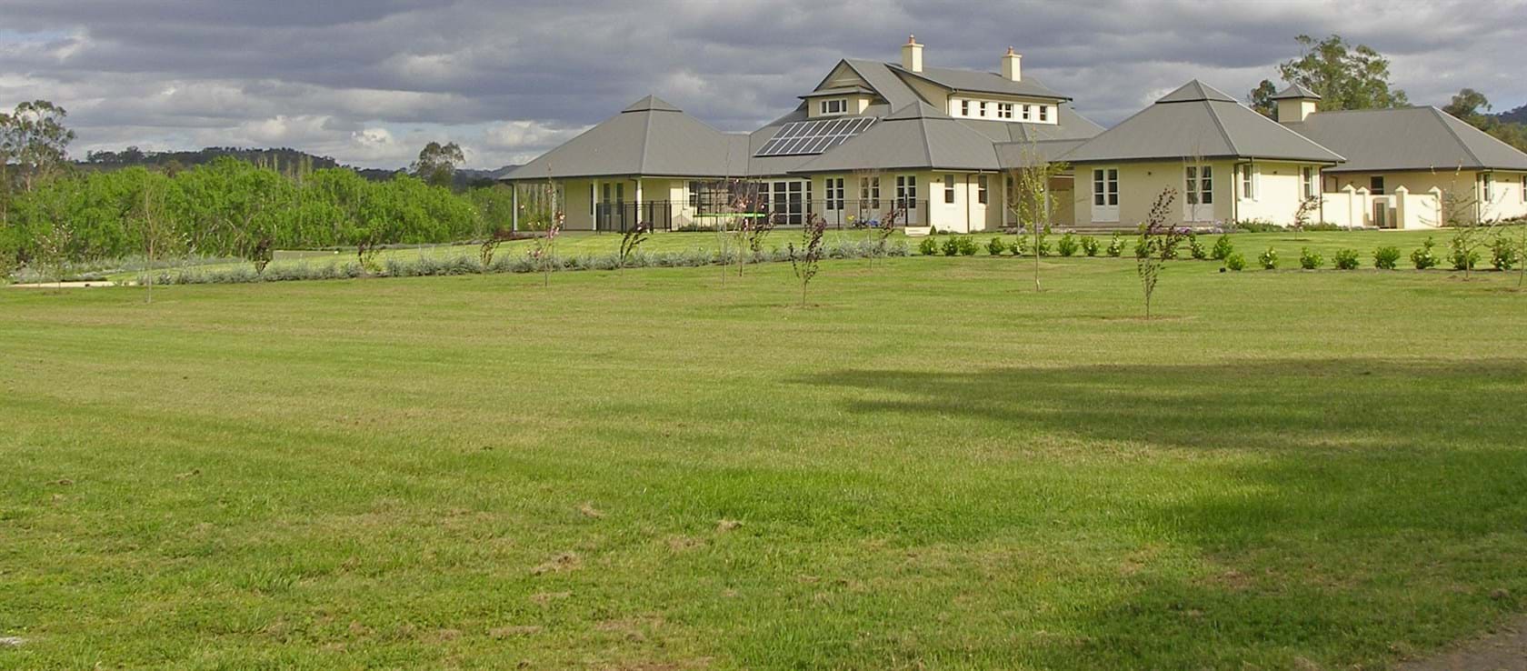 Extensive gardens and lawn areas were created at the Coolmore Homestead near the Hunter Valley. Leveling, amelioration works, fertilization and mass planting - including advanced plantings - achieved an expanse of formal gardens the client can enjoy from every aspect of the residence.