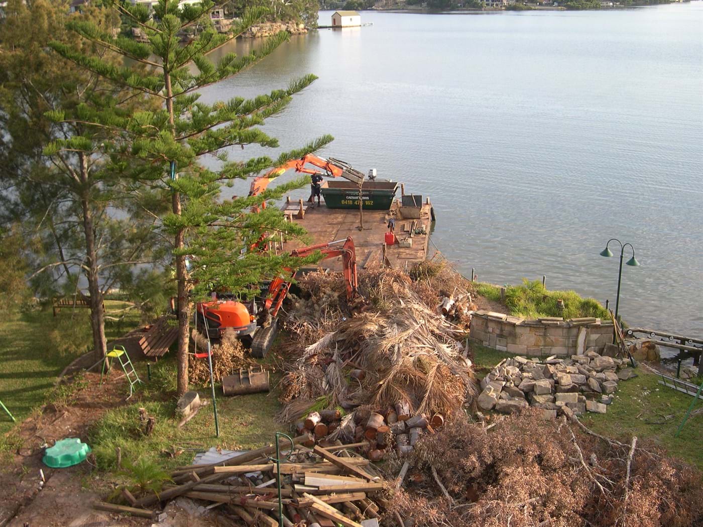 Extensive works were carried out on a waterfront property at Kareela to provide retaining walls, drainage works and updating of the pool and deck area. Due to access constraints, materials needed to be brought on & off site by barge.